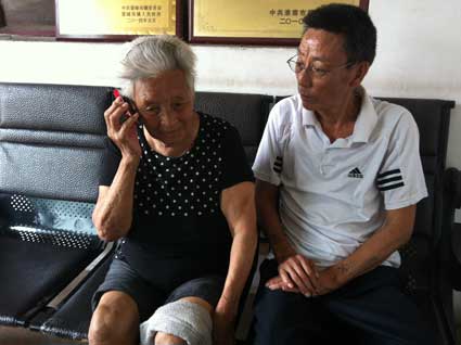 圖二:李素英老人(左)正在接聽濟源日報記者打來的電話