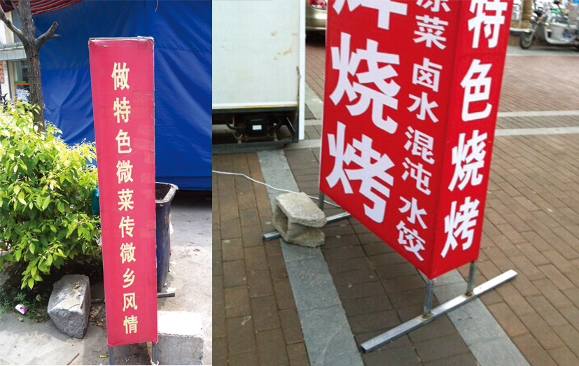 8月6日,記者在朝陽路一家土菜館門前看到,一塊較大的宣傳牌上赫然寫著“做特色微菜傳微鄉風情”,“微菜”和“微鄉風情”似乎讓人有點不明就里,在跟老板交流之后才知道,其實他想表達的是“做特色徽菜傳徽鄉風情”。雖然字形看起來差不多,可是這兩個字的意思卻差了許多。