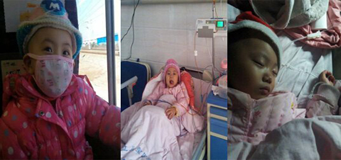 病中的小夢佳(圖片來自張士偉QQ空間)