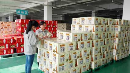 圖:工人師傅正在對(duì)即將出廠裝箱的牛肉湯產(chǎn)品進(jìn)行最后的抽檢