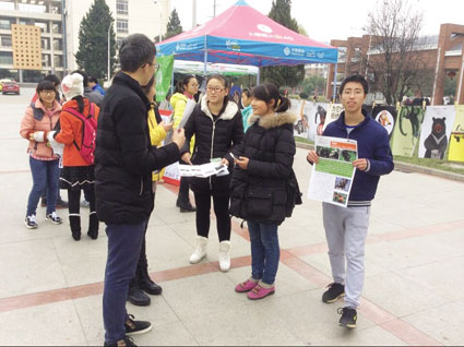 圖:安理大綠色協(xié)會(huì)成員校園內(nèi)宣傳保護(hù)動(dòng)物
