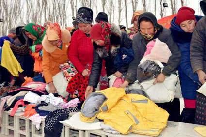 圖二:木努爾村村民正在挑選自己所需的衣服(新疆伽師縣青年志愿者公益協會供圖)