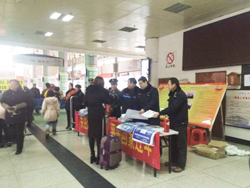 市運管處聯合消防部門在淮南汽車站開展春運安全消防宣傳。