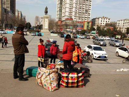 正月十五還沒到,有很多農民工兄弟卻早已打點好行裝,或和同村的人一起,或拖家帶口,踏上了東進南下北上的打工之路。未來的路在哪?該怎么走?很多人不得而知,在他們看來,走一步算一步,實在待不下去,還有家人在等著他們。家住大通區上窯鎮的方德剛便是這務工大軍中的一員,淮河早報、淮南網記者在火車站門前廣場見到他時,他正和同伴一起商量著先到哪轉轉。
