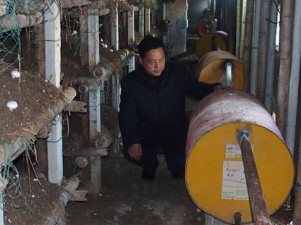 趙明說,這套保溫裝置專利是在市農科所專家指導下進行研制的。淮南市農科所高級農藝師竇祖霞介紹,這一專利也是在長期生產實踐中總結出來的。蘑菇種植用鍋爐蒸汽加熱,特別是在冬天冷的時候,大棚的溫度也能夠保障。以往的辦法加熱受熱面少,而采用這種貯水桶以后,增加了受熱面,不但鍋爐加熱的時候能保證溫度,即便鍋爐停下來,大桶里的水溫還會輻射到一定空間內,保溫時間延長了,蘑菇生長的溫度也得以保證。特別像今年的嚴寒季節,有了這套裝置,我們的菇農就不會因為嚴寒受到什么損失。
