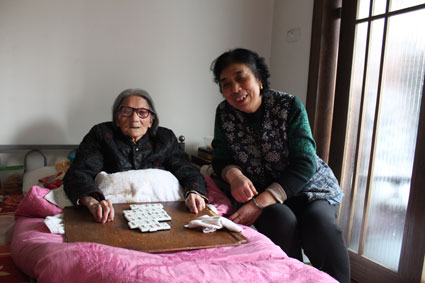 一提起王萍照顧母親的事,鄰居們都看在眼里。感動在心里,每一位都對她稱贊不已,夸她孝順,養(yǎng)女勝親女。汪寶清喜歡干凈,王萍就每天給她打掃房間,換洗衣服,換被單。每晚睡前都要用溫水給汪寶清泡泡腳,冬天每隔幾天就帶她去洗澡。每天陪著汪寶清聊天,看電視,從不讓老人感到一絲孤單。汪寶清年紀大了,胃口不好,吃不了涼食,王萍就變著花樣做菜,滿足老人的口味,就連水果都要放到熱水里燙燙或在鍋里蒸蒸才拿給老人吃。天氣好的時候,王萍還會帶著汪寶清曬曬太陽。