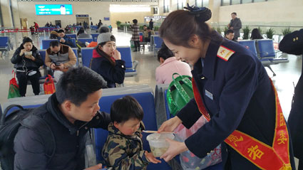 發揮車站無障礙售票窗口、重點旅客候車專區的作用,組織40名志愿者為重點旅客提供“優先購票、優先乘車、優先進站、優先托運行李”的四優先服務。在廁所和洗手間等處配備衛生紙洗手液等物品,為旅客提供更周到的服務。開展了除夕夜送水餃、元宵節送湯圓活動,與旅客共度佳節,讓旅客感受到鐵路的溫暖。