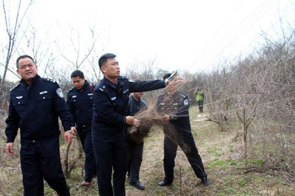 圖一:淮南市森林公安與市民聯手清除捕鳥網。