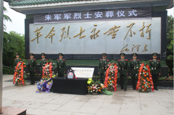 圖四:朱軍軍烈士的安葬儀式在鳳臺南平山烈士陵園舉行。 (資料圖片)
