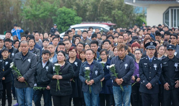 圖三:靖江社會各界人士自發組織起來為朱軍軍烈士送行。