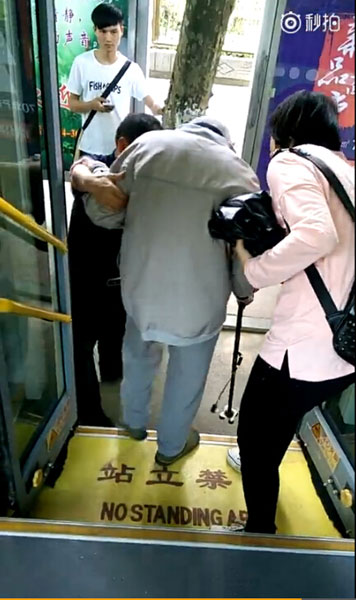 不一會(huì)兒,9路車到了,陸蓉扶著老人上了公交車,并為老人刷了乘車錢。上車之后,有人為老人讓了座,但是老人并不能坐得十分穩(wěn)當(dāng),于是陸蓉站在旁邊一直扶著他,陪他聊天。可能是感謝陸蓉幫他刷了乘車錢,老爺爺竟然從口袋里拿出一張100元人民幣要給陸蓉,陸蓉微微一笑拒絕了, 讓老人把錢裝好。不一會(huì)兒到站了,陸蓉扶起老人,幫他下車,這時(shí)候也有好心乘客加入其中,幫著一起把老人扶到了車站,臨走時(shí),老人一直對(duì)陸蓉說(shuō)“謝謝你!”