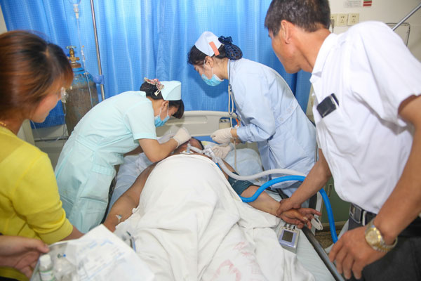 6月14日,因慢性阻塞肺部等疾病謝傻子——謝海順老人住進了淮南東方腫瘤醫院內科。醫院依照謝海順特殊情況給予了減免費用的決定,醫院醫護人員更將其給予了特殊照顧。謝海順的主治醫生洪鎮告訴淮河早報、淮南網記者,今年74歲的謝海順因慢性阻塞肺部疾病、Ⅱ型呼吸衰竭以及肺性腦病等多種疾病入院,15日上午謝海順出現呼吸困難,意識不清,病情十分危險。醫院成立以呼吸科、外科、ICU、藥劑科等專家組成的搶救團隊全力搶救謝海順,病情雖然得到了控制,但仍沒有脫離危險。