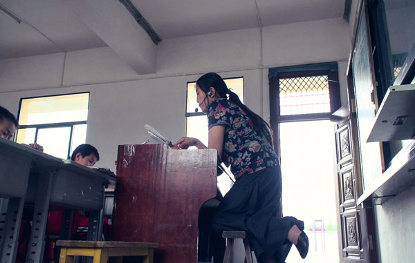 四個小時,對拄著拐杖僅靠一條腿站立的李老師來說,是一個極大的考驗。剛做教師的時候,她用雙拐支撐行走,后來為了教學需要,她主動放棄了雙拐,改學使用單拐幫助行走。由于長時間拄著單拐站立教學,慢慢的她脊椎開始側彎變形,8年前,她病情加重,嚴重的腰腿疼痛經常在上課的時候折磨著她。按照學校安排,李元芳老師本來可以坐著開展教學,但為了保證教學效果,增加與學生的互動頻次,她放棄了坐著教書,并在講臺上擺放了一條木制長凳,每次腰腿疼得受不了時,她就單腿或雙腿跪在板凳上給孩子們講課,以緩解腰腿疼痛,就這樣,她在三尺講臺上,一跪就是八年。