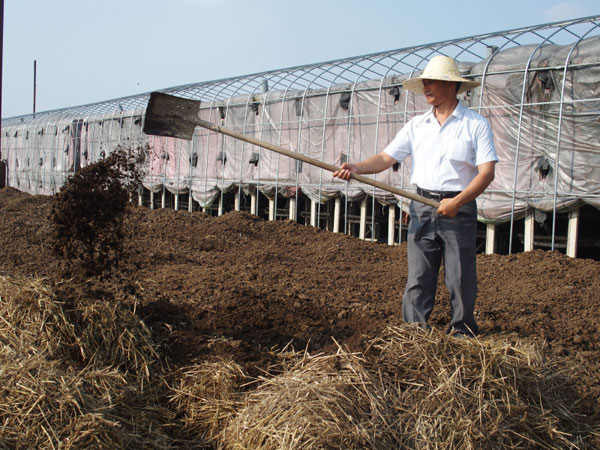 在人們的常識中,雙孢菇種植的基料是“秸稈+牛糞”,但雙孢菇種植的前提條件還有溫度的控制。雙孢菇適宜的培養(yǎng)環(huán)境溫度前期是25℃,出菇后要控制在16~22℃之間,不喜光,所以人們看到的雙孢菇種植時間多在冬季,陰暗的大棚中,菇房利用鍋爐加熱控制溫度,這時雙孢菇種植利用的秸稈是稻草。而麥收正處午季,天氣炎熱,利用麥秸種植雙孢菇存在明顯的障礙,超出了雙孢菇生長的適宜溫度。