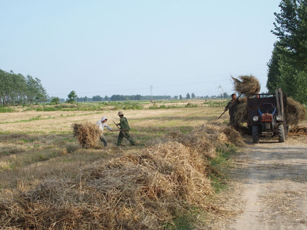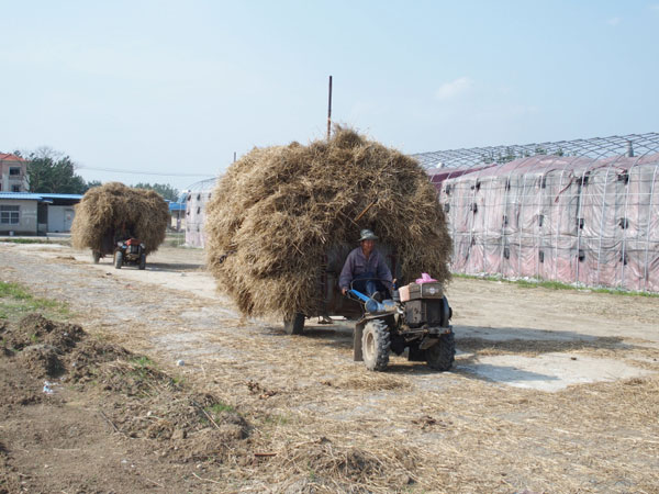 圖二:將麥秸運往雙孢菇生產(chǎn)基地