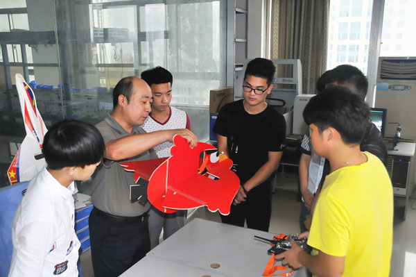 是什么讓這么多國內知名企業僅僅通過面試就能錄用在校大學生呢?帶著這個問題,淮河早報、淮南網記者進行了實地探究。在該校電子產品維修協會的教室里,幾個同學正在研究電子產品,在一側的桌子上擺放著色彩艷麗的電子花束、能夠打穿2厘米厚紙板的電磁炮、卡帶錄音機改裝的電子音響等,據指導老師王大文介紹,僅卡帶錄音機改裝的電子音響這一項小發明,就為學校節省了近萬元的設備購置費用,其原理就是用MP3模塊改裝舊的磁帶錄音機,替換損壞失靈的機芯,使其具有電子音響的功能,延長了舊設備的使用壽命。2006年學校購買了2臺汽車模擬駕駛儀,后來由于器件損壞,一直荒廢不用。王大文帶著幾位學生創新采用積木式維修法,保留了原有機械結構,自己動手制作零部件,僅僅花了850元便修好了設備,為學校節省了5000元。