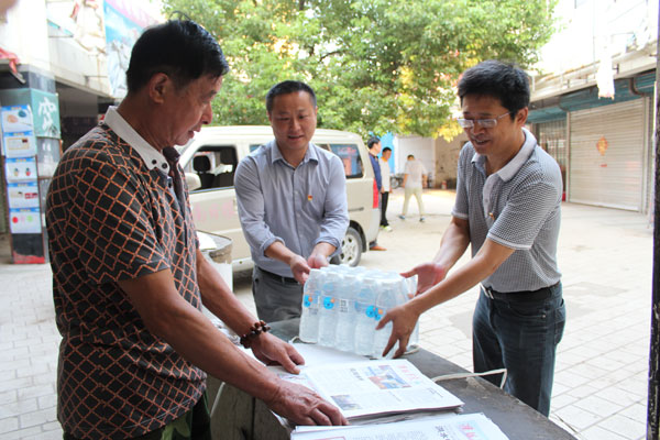7月下旬以來,淮南氣溫節節攀升。為了讓讀者及時汲取“精神食糧”,淮南日報社近百名發行員穿梭在大街小巷,迎著晨曦,頂著烈日,把報紙送到千家萬戶。8月2日早上,淮南日報社機關經營黨支部的黨員同志準備了礦泉水、風油精等防暑降溫用品,慰問高溫下忙碌的淮南日報社發行員。