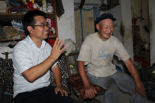 新建社區有一名腿部殘疾的老人張大爺,他收養了一名癱瘓的兒子。慈善超市成立以后,志愿者定期給他們送去糧油等生活用品,許慶朝常去看望他們,鼓勵他們,現在張大爺和兒子對待生活的態度十分樂觀。
