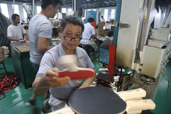 圖二:追求質量,“國奧”要求員工對乒乓球拍切邊誤差不得超過0.1毫米