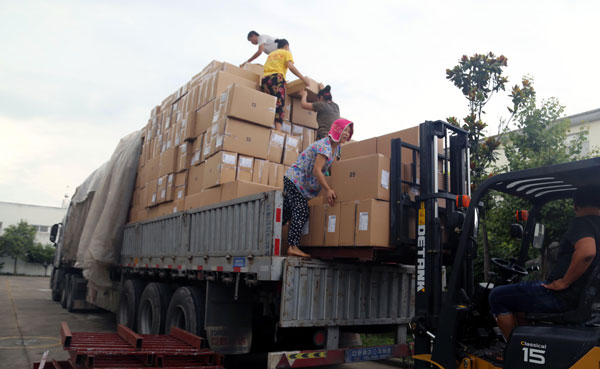 圖一:8月10日,“國奧”廠區內滿滿一車乒乓球拍即將發往法國