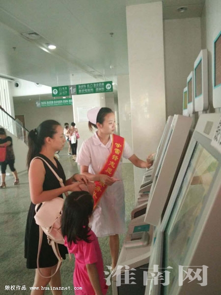 在淮南市第一人民醫院門診部,常年有一個門診志愿服務站點,志愿者都是醫院的廣大醫護人員和安徽理工大學醫學院、蚌埠醫學院的大學生們,他們在門診從事就診引導、幫扶、測量血壓、健康宣傳等,受到患者好評。
