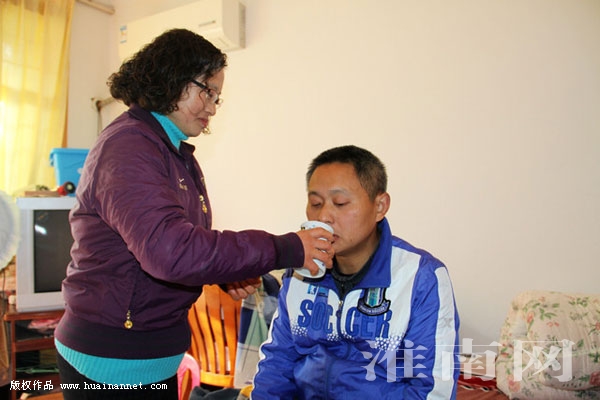 弟弟出事后,已經結婚的她毅然將弟弟接了過去,每天為弟弟做一日三餐、清理大小便、洗床單枕巾等,并為弟弟花去了大量的醫藥費,讓原本生活就不寬裕的她更加拮據,加上除了上班,大部分時間都在照顧弟弟,導致愛人多方面不理解,為了弟弟,她飽受煎熬,失去了原本幸福的家。堅強的人終受老天爺眷顧,她遇到了現在的愛人,他也加入到照顧弟弟的行列。為了方便照顧家人,蔣荷芝愛人從淮南礦業集團調到新集一礦運銷科上班,又租了一套房子至今,他們在生活中相互扶持,惺惺相惜,從來沒有過任何怨言。后來,弟弟可以走路了,卻因腦部受傷留下后遺癥,被診斷為器質性精神障礙,黑白顛倒,沒有睡眠,經常走丟,有一次下著雷雨,他跑到花家湖大壩上,被一個熟人給送了回來。