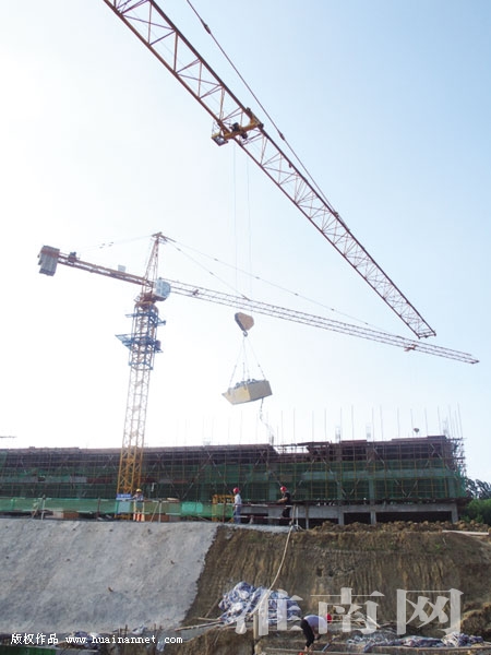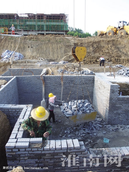 奔走在建設工地上,淮河早報、淮南網記者看到,一處低于地面的負一層建筑地基已基本成形,這便是醫療用房的基礎,正有工人在忙著綁扎鋼筋和砌筑磚塊。頭頂上,塔吊在不停地旋轉起起落落,運轉建筑材料。負一層建筑的北側,2#老年公寓樓已建設到三層。此刻,工地上最忙碌的,便是鋼筋綁扎班組人員,驕陽下,面臨下方的鋼籠,工人們得趴下身子,把手伸下去才能夠著綁扎,又是一番汗流浹背。