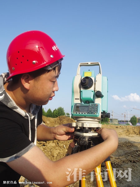 工地上,一位年輕的測繪員的身影吸引著淮河早報、淮南網記者的注意,驕陽下,他的頭發已被汗水濕透,成了一綹一綹的。他叫胡乃鵬,1995年出生,東北人,身材高大,已工作2年。他在齊齊哈爾鐵路工程學校學的就是測繪,很喜歡這個專業。每天,胡乃鵬要在工地上測量5、6個小時,其余時間就回到房間整理分析測繪資料并歸檔。雖然很辛苦,他樂在其中。前不久,他才從剛完成的鄭阜高鐵項目調來,那個項目工藝更先進些,他希望能把先進的GPS測繪儀應用到這個工地上,以提高效率,提高精度。