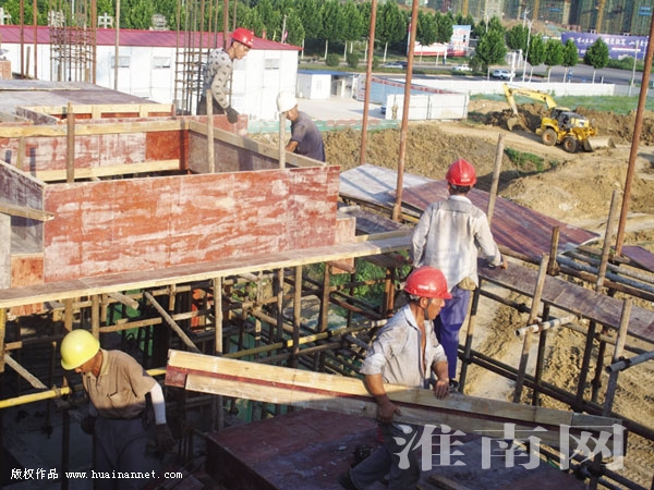 7月中下旬,淮河早報、淮南網記者來到淮南市重點工程——市級老年公寓建設工地。此刻是下午3時30分,雖已避開正午的日頭,可驕陽依然“火力全開”,炙熱烤人。沒一會兒,淮河早報、淮南網記者的衣服就已被汗水打濕。而工地建設者們不管不顧,各自忙著手頭的活,任由汗水拋灑。