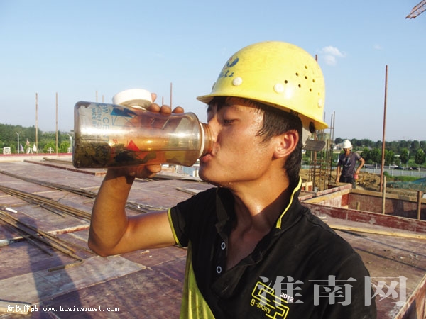 鋼筋綁扎班班長周艷彬是來自淮南潘集的農民工,在建筑工地干了20多年,成長為一名班長,如今可拿到8000元的月薪。工地上,他特別忙碌,顧不得與淮河早報、淮南網記者聊天,只能見縫插針地說道。他說,常年在工地,經歷酷暑高溫已是家常便飯,只能堅守,干好自己的本職工作。