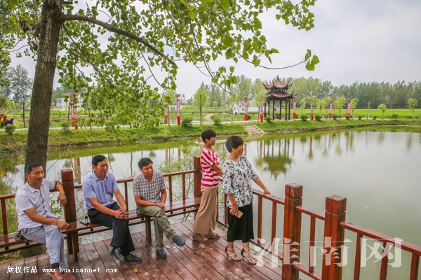 池塘里,荷葉田田,魚戲蓮葉間;濱河公園里,楊柳依依,芳草碧連天。放眼望去,修剪整齊的松柏,四季常青的灌木,三兩閑適的村民,掩映在綠樹和鮮花中的村莊寧謐而祥和。