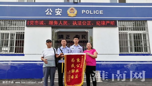 “第一次到淮南,沒想到遇到這么多好人,真的非常感謝。”張同學(xué)和父母對拾金不昧的出租車車主和駕駛員表示感謝,更對派出所民警為民服務(wù)、認(rèn)真負(fù)責(zé)的精神表示稱贊。為表達(dá)感謝之情,9月15日,張同學(xué)父母還特地制作了一面錦旗送到龍泉派出所,交到民警詹同西手中。