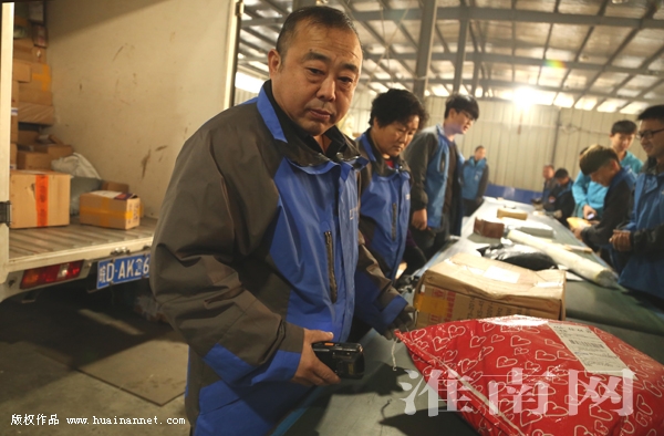 當(dāng)晚凌晨時分,淮河早報、淮南網(wǎng)記者在我市城區(qū)走訪時,看到一些快遞便民服務(wù)點內(nèi),依然燈火通明,在這里,快遞員們正將鋪滿一地的快件掃碼上柜,凡是經(jīng)過他們掃過的快件,客戶的手機里都會收到一條取件通知短信。這時候,客戶如果愿意,當(dāng)晚就可趕去取件。已經(jīng)休息的客戶,可以次日取件。 “當(dāng)天進入淮南的快件,我們必須當(dāng)天分揀完畢并以最快的速遞派送出去,不然第二天趕到的快件,就沒有地方進行處理了。”久經(jīng)雙“11”考驗的淮南中通速遞負責(zé)人告訴淮河早報、淮南網(wǎng)記者:“今年快件量太多,超出我們的預(yù)期,我們有的員工已經(jīng)好幾天都沒有睡一個整覺了,快件一到淮南,我們希望第一時間將它們送到客戶手里,有時我們半夜去派件也是沒有辦法。希望廣大市民理解、支持。”