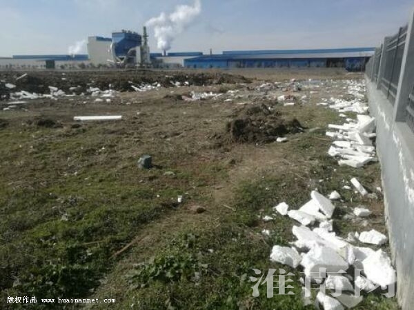 在淮南之星汽車銷售服務有限公司南邊,與其一墻之隔的地方,淮河早報、淮南網記者看到存在大片垃圾,有大量支離破碎的白色泡沫板,也有各種廢棄的生活用品。破碎的泡沫板由于很輕,有風時,被大風刮得到處亂飛。