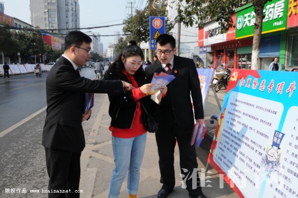 為推進掃黑除惡專項斗爭向縱深發(fā)展,連日來,全市兩級法院組織干警走上街頭,通過擺放宣傳展板、發(fā)放宣傳彩頁、講解典型案例等方式開展掃黑除惡專項斗爭法治宣傳活動,同時發(fā)動群眾積極檢舉揭發(fā)黑惡勢力違法犯罪線索,形成強大斗爭聲勢和輿論環(huán)境。圖為壽縣法院、謝家集區(qū)法院開展宣傳活動。(記者 吳 巍 編輯 湯寧)