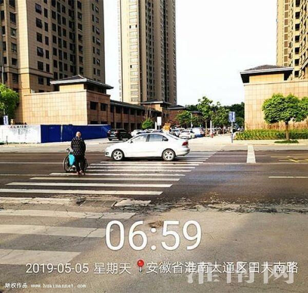 5月5日早上6時50分,淮河早報、淮南網記者來到位于大通區田大路瀚城小區附近的斑馬線前,進行了半個小時的守候。此時,該路口送孩子上學的家長較多。在觀察期內,有117余波次、近百位市民穿行斑馬線。但就是在人流量如此大的時段,主動為這些過馬路的市民讓行的車子只有7輛。