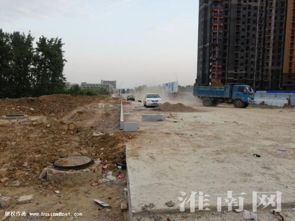 淮河早報、淮南網記者沿路往南行走看到,由于有的路段路面還沒有硬化,路面上存在大量松軟細土,刮起較大風時,很容易出現揚塵。這條道路西側是正在建設的玫瑰苑小區,而該道路也是玫瑰苑小區通向外部的主要通道。來往該小區車輛和道路施工車輛從該路經過時,車后頓時塵土滾滾,彌漫四周。