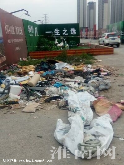 市民宋女士向淮河早報、淮南網記者反映,在新城悅府工地的一條居民道路上,堆積著大量的生活垃圾。這些垃圾散落在路面上,既影響環境衛生,又給路人帶來不便。(記者)