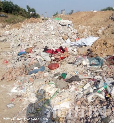 淮河早報、淮南網記者登上渣土堆頂后,在東南角、西北角等處均發現亂倒于此的建筑垃圾及生活垃圾。在渣土堆北邊,大量的建筑垃圾就沿著渣土堆邊的一條道路上傾倒,目前已將本就不寬的道路蠶食過半。據居住在渣土堆西北角的一戶居民說,大概在一個月前,他就發現有人在渣土堆頂部及周邊地帶亂倒垃圾。這些亂倒垃圾的行為,大都發生在夜間。尤其是近十天以來,這種偷倒垃圾的行為更是有恃無恐。
