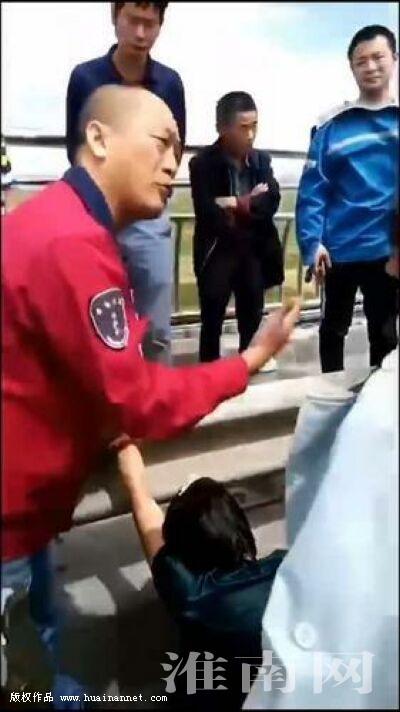 5月20日下午1時30分左右,112路駕駛員楊井生駕駛公交車由南向北行駛至淮河大橋時,突然看到右前方有一輛私家車停在路邊,不遠處一名中年女子站在大橋欄桿外面,望著淮河癡癡地發(fā)呆。