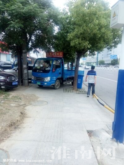 市民周女士向淮河早報熱線反映,在朝陽東路209號地段西約50米處,有一輛小貨車經常違停在該路段南邊的人行道上,導致行人無法正常通行。 (記者)