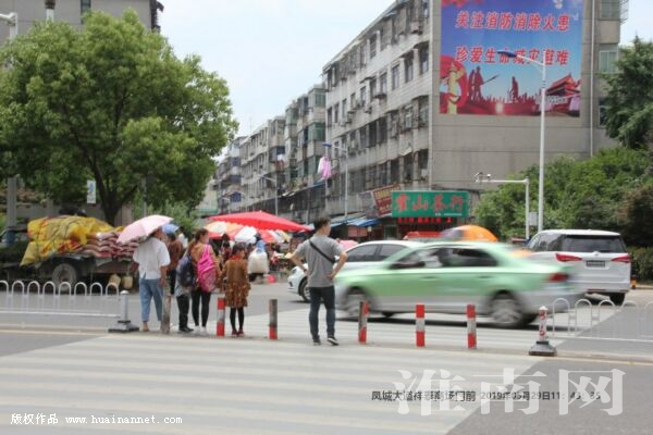 圖二:(鳳城大道祥泰商場(chǎng)門前 2019年05月29日11:43:35) 11時(shí)43分,人行橫道上的行人只能站在路中間等待車輛駛過(guò)。