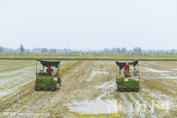 托管了全村及周邊鄉鎮的近萬畝土地,負責耕、播、種、收、售“一條龍”服務,楊村鎮騫興為農服務中心負責人陳宏斌在田間指導作業,顯得胸有成竹:“昨天正式開始插秧,10臺插秧機同時作業,十幾天就能插完1萬畝地,秋收時畝產將達到1000斤以上,糧食增產、農民增收妥妥的!”