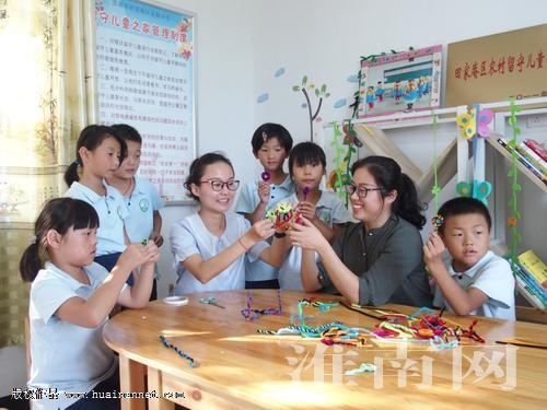 圖:朱瑞(左)和宮雪(右)在“留守兒童之家”帶孩子們活動(記者 張雪峰)