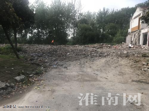 9月8日下午,淮河早報、淮南網記者再次來到此處,發現從碧荷庭東圍墻到中石化加油站這段距離的拆遷地塊大致可分為三塊,東西兩頭的拆遷工地都已覆蓋防塵網,唯獨留下中間那塊拆遷工地的建筑垃圾裸露在外。