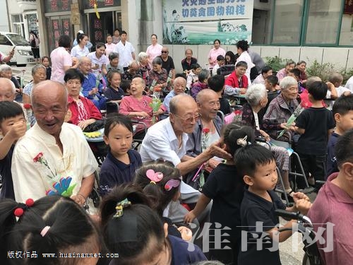 上午9時許,淮河早報、淮南網記者趕到東方家園老年公寓時,現場一片歡聲笑語。來自太陽花幼兒園的40多名小朋友正在給這里的爺爺奶奶表演節目《小太陽》,童稚的歌聲伴著孩子們趣味的表演讓老人們感受到了溫暖。表演完節目,孩子們還給老人們送上了鮮花、月餅等禮品,為老人捶背、梳頭,許多老人感動得熱淚盈眶。隨后,信宜物業的員工為老人們表演了合唱《感恩的心》,志愿服務中心的志愿者還給老人們免費理發,現場涌動一股暖流。