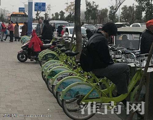 近日,淮河早報、淮南網記者在實驗中學山南校區門前發現每天下午有不少家長等孩子放學,因附近并無座椅,就有不少家長直接坐在小綠上玩手機或者聊天。(記者)