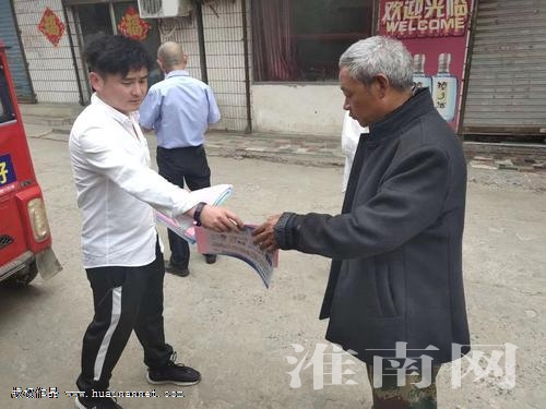 圖為陳旭向村民們宣傳“掃黑除惡”和“雙提升”。(記者 柏雪)