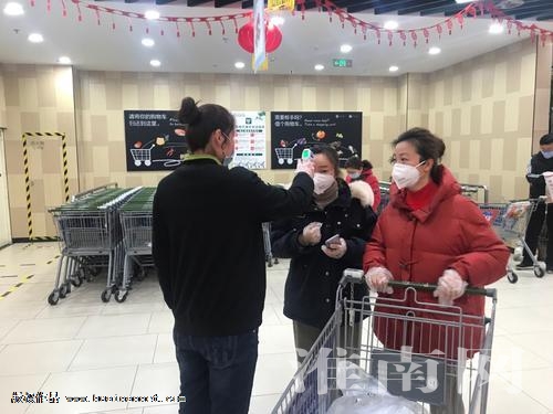 最近一段時間,淮南各大商超嚴格落實新型冠狀病毒感染的肺炎疫情防控,按照相關要求對進入商超的顧客均進行體溫測量。1月28日中午,淮河早報、淮南網(wǎng)記者在洞山東路某大型商超采訪時看到,商場和超市的每個入口處都設有體溫檢測點,工作人員手持體溫檢測儀對進入商場和超市的每一名顧客進行體溫檢測,對疫情做到嚴防嚴控,進入商場和超市的市民均配合體溫測量。進入商場和超市的市民和超市工作人員都自覺戴著口罩,共同應對疫情。(記者 王玲)