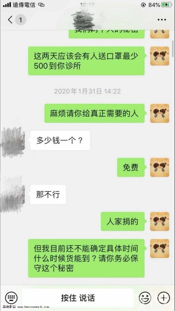 “我哥,現在你的診所缺口罩嗎?”“缺,特別缺!”“這兩天應該會有人最少送500個到你診所,麻煩請你給真正需要的人!”